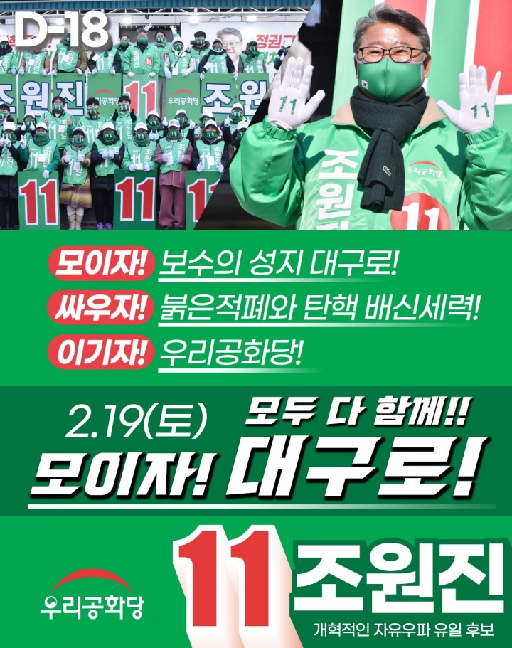 Á¦¸ñ : 2/19(Åä) [´ë±¸] 11¹ø Á¶¿øÁø ¿ì¸®°øÈ´ç ´ëÅë·É Èĺ¸ ÀÏÁ¤