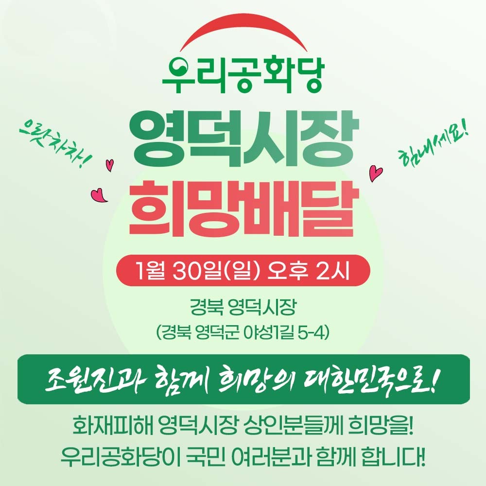 Á¦¸ñ : 1/30(ÀÏ) ¿ì¸®°øÈ´ç ¿µ´ö½ÃÀå Èñ¸Á¹è´Þ ¾È³»