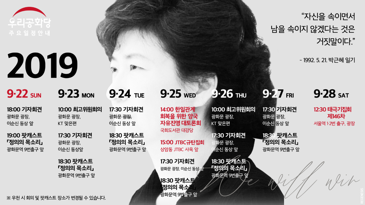 < 2019³â 9¿ù 26ÀÏ(¸ñ) ¿ì¸®°øÈ´ç ÁÖ¿ä ÀÏÁ¤ >