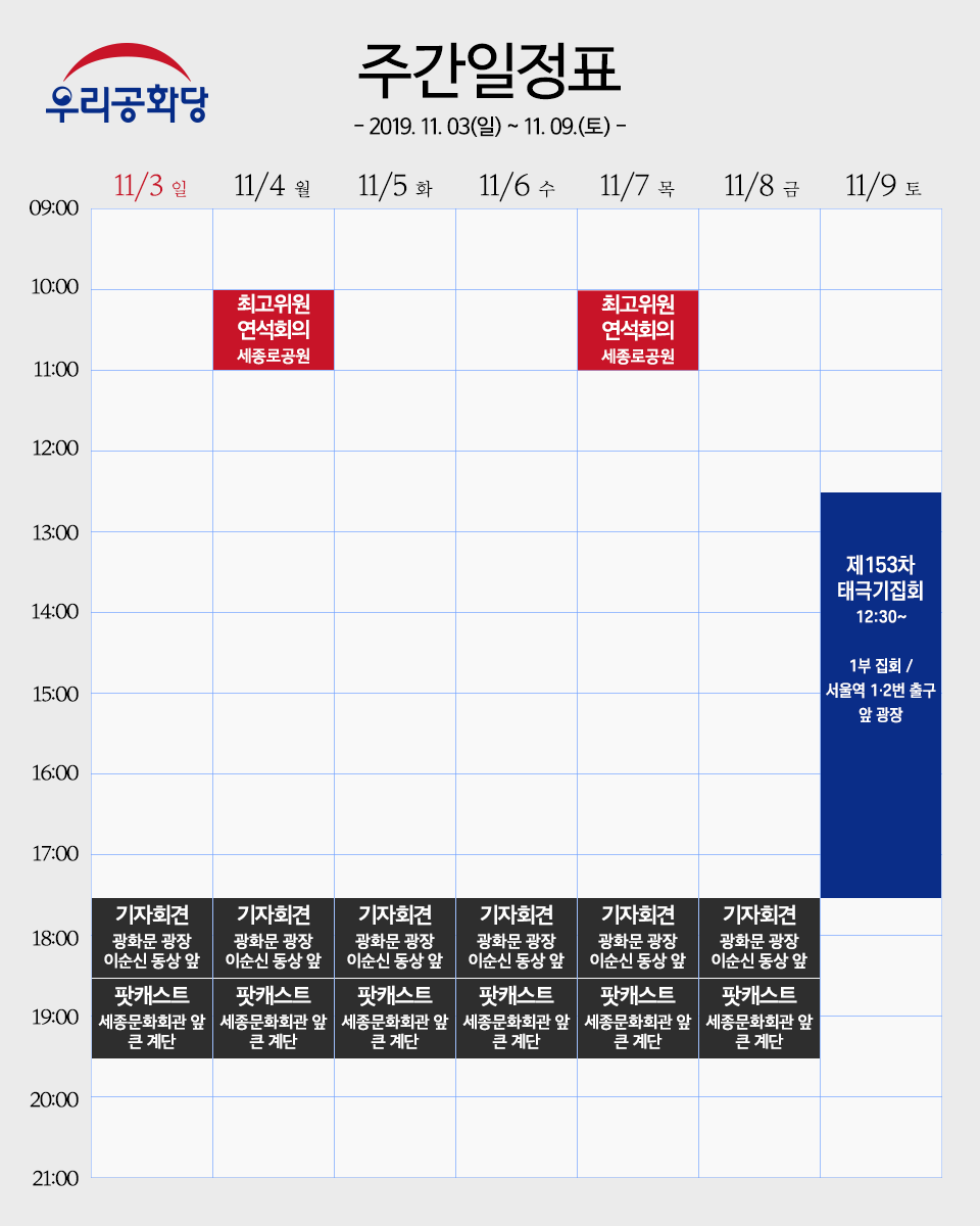 < 2019³â 11¿ù 8ÀÏ(±Ý) ¿ì¸®°øÈ´ç ÁÖ¿ä ÀÏÁ¤ >