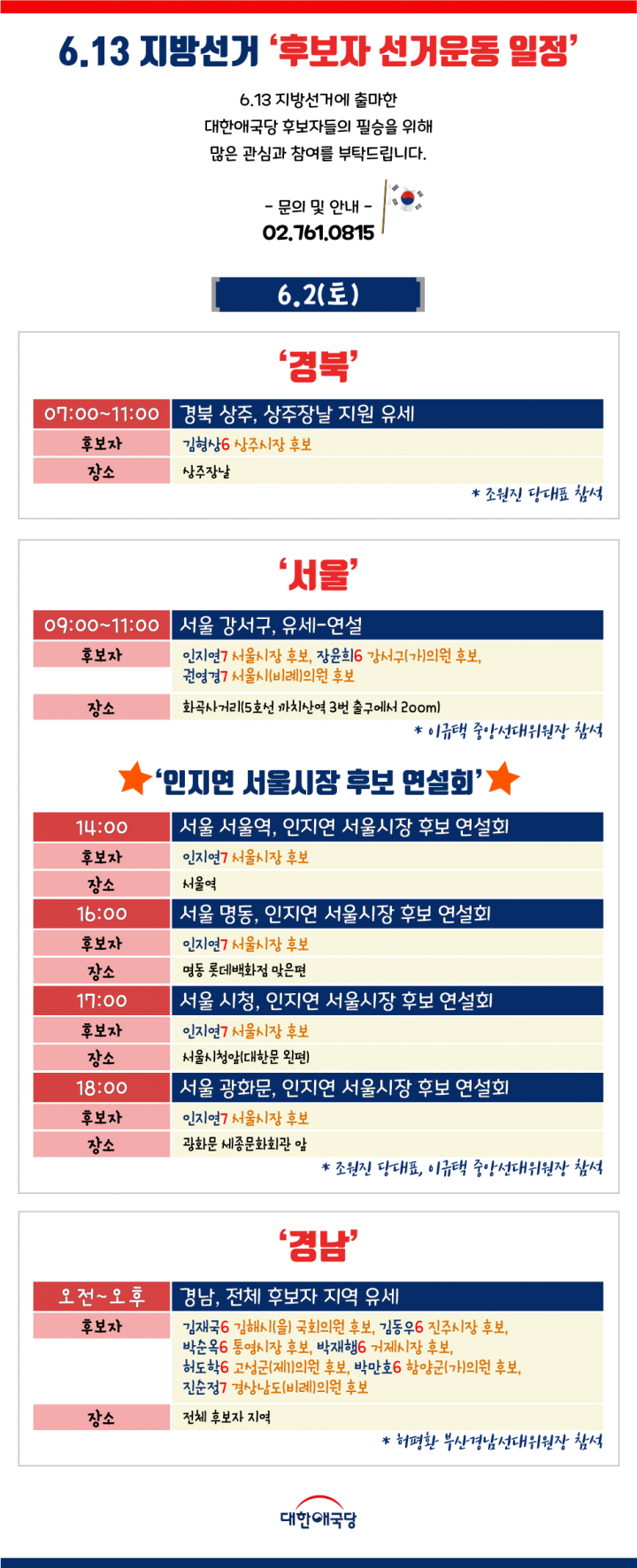 6/10(ÀÏ) 6.13 Áö¹æ¼±°Å Èĺ¸ÀÚ ¼±°Å¿îµ¿ ÀÏÁ¤