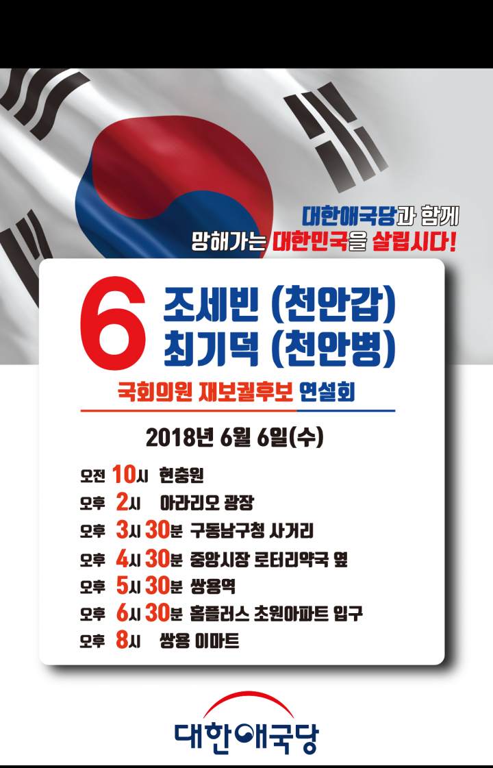 6/6(¼ö) ÇöÃæ¿ø Âü¹è ¹× 6.13 Áö¹æ¼±°Å 'Á¶¼¼ºó(õ¾È°©), ÃÖ±â´ö(õ¾Èº´) Èĺ¸ ¿¬¼³È¸'(õ¾È ¾Æ¶ó¸®¿À ±¤Àå, 14½Ã)