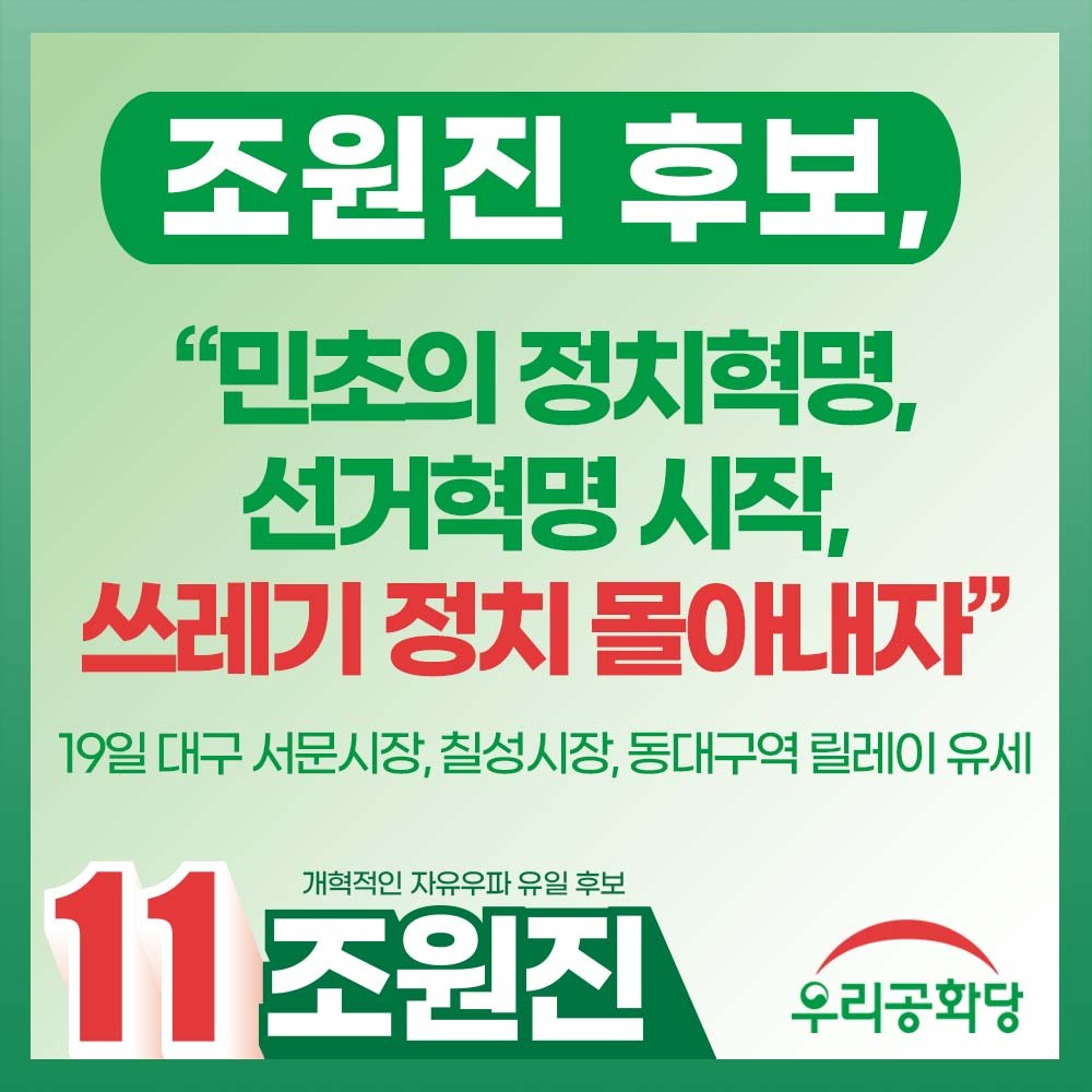 Á¶¿øÁø ´ç´ëÇ¥ ¼³Àλç - ÇÔ²² ÈûÀ» ¸ð¾Æ ´ëÇѹα¹°ú ±¹¹ÎµéÀ» ÁöÄѳÀ½Ã´Ù.
