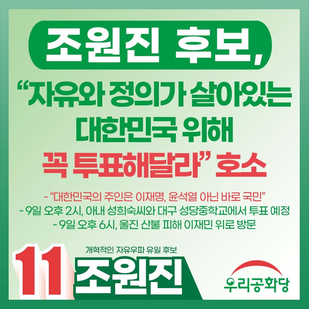 Á¶¿øÁø ´ç´ëÇ¥ ¼³Àλç - ÇÔ²² ÈûÀ» ¸ð¾Æ ´ëÇѹα¹°ú ±¹¹ÎµéÀ» ÁöÄѳÀ½Ã´Ù.